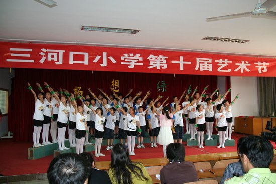 在生意盎然的五月,三河口小学以“放飞绿色梦想,唱响绿色之歌”为主题的第十届艺术节开展得红红火火、热热闹闹。以“环保”为主题的系列活动精彩纷呈:环保绘画放飞梦想;环保小报图文并茂;环保征文情真意切;还有环保摄影赛、环保小制作、环保知识竞赛等一系列活动,真正让环保走进了全校师生的心中。“唱响绿色之歌”同学们也行动起来了,同学们在班主任的指导下,利用课余时间投入到活泼快乐地排练中,热情高涨,校园里到处飞扬着我们的歌声。真是“班班有歌声、人人唱环保”。