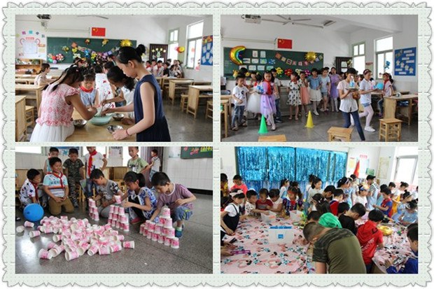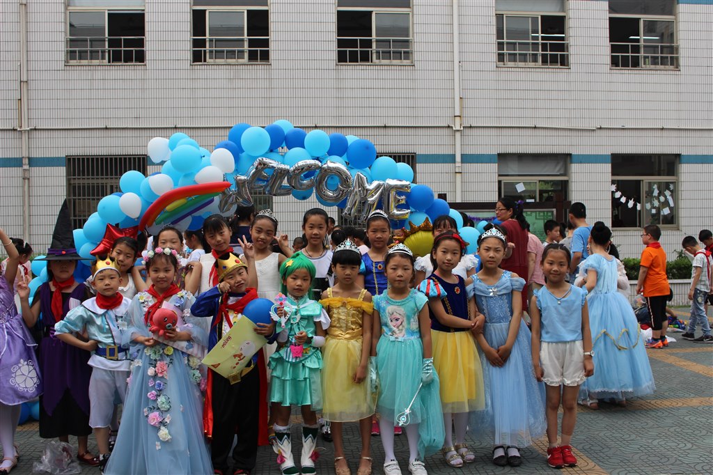 各班选定中外经典故事中的童话元素,精心装扮教室。你瞧,那用闪亮的雨丝帘布置的背景墙加上金色的铝膜气球装饰,俨然一个绚丽的舞台。学生走进教室的一刹那,难掩激动、兴奋的心情。其他的教室有的悬挂着彩色气球流苏,有的用可爱的精灵气球缀满窗户的各个角落,有的用形状各异的拉花、彩带、彩旗做装饰,还有热气球呢…… 孩子们穿上各具特色的服装把自己打扮成喜欢的童话人物,穿梭在校园的各个角落,整个校园变成了奇幻的童话乐园!