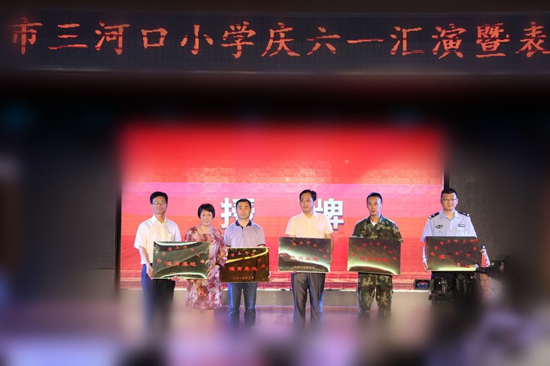 在庆六一汇演暨表彰大会上,郑陆交警中队,郑陆消防中队,郑陆卫生院,污水处理厂以及郑陆牟家颐养院成了三河口小学的五大德育基地。钱国云校长隆重地为他们授牌。