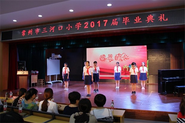 细雨点点不惊人,凉风阵阵送爽来。6月30日上午,三河口小学全体领导、六年级全体任课老师、同学、家长代表,济济一堂,整个致远厅座无虚席,犹如一个和乐的大家庭,为六年级毕业生举行以“明天让我成为您的骄傲”为主题的毕业典礼。