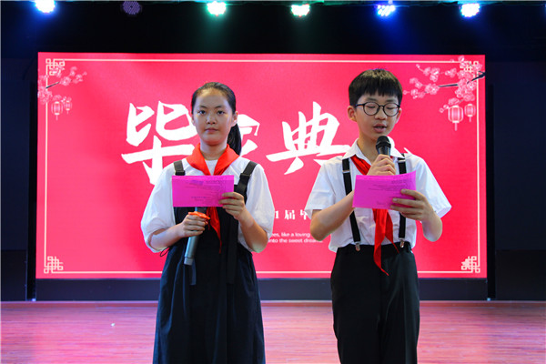 随后教师代表周锭老师送上离别致辞:今天的毕业不是终点,而是攀登新高度的起点,希望孩子们保持一颗纯洁的童心,怀着对学习知识的无限激情,对生活的无限热爱去投身知识的海洋,把自己培养成一个有益于人类进步和发展的人。