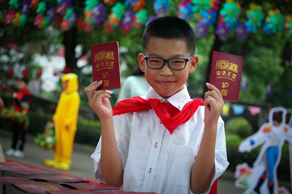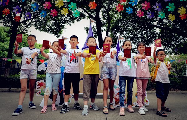 不要着急,要想进入童话王国,可少不了童话王国的护照哦!那办理护照有什么条件吗?条件很简单,拥有纯真笑容的孩子就能拥有这本童话护照。你瞧,一张张笑脸如花绽放,一本本童话护照,从校长们手中传递到了孩子们手中。一位位小公主和小王子的童话旅程就此开启啦!拿起护照细细端详,红底烫金的封面透露出庄重的感觉。打开护照,“美好寄语”是老师的殷殷期待;“我的小档案”是孩子们的个性化体现;“学年签到”是孩子们的加油站;“经典童话阅读之旅”是孩子们的阅读地图;“自信表演童话之旅”是孩子们张扬个性的舞台;“自由创作童话之旅”是孩子们的笔尖游乐场。这本匠心独运、别具一格的童话护照刻着孩子们的阅读足迹,将陪伴孩子走过六年的童话之旅。