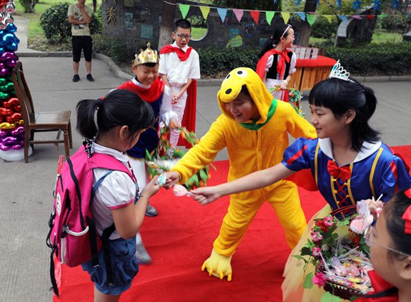 2017年8月31日,常州市三河口小学迎来了“走进童话王国,开启幸福之旅”最美开学季活动。沉寂了两个多月的校园顿时被欢声笑语包围。