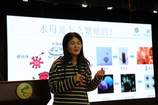 讲座中,许老师用生动形象的语言和精美的图片,将小记者们引入了神秘的水母世界。在许老师深入浅出的讲解中,小记者们惊奇地发现,水母的身体构成如此特别——它们的体内水分含量高达95%至98%,堪称“会游泳的水”!当了解到水母作为古老的腔肠动物,具有“有口无肛门”这一奇特特征,食物从口进入消化腔,消化后的残渣仍然由口排出时,孩子们纷纷睁大了求知的眼睛,发出阵阵不可思议的惊叹,对生命的多样性有了更直观的认识。