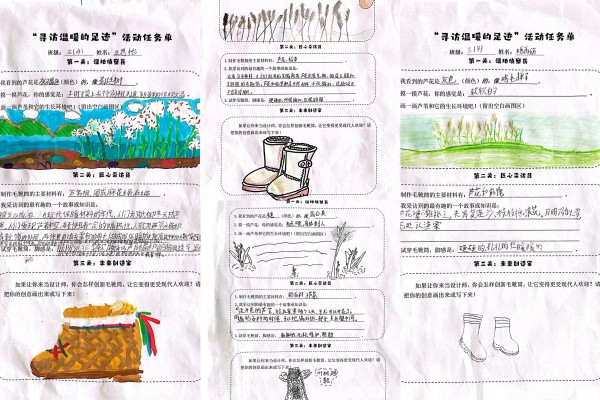 活动的最后,是充满奇思妙想的“畅想未来”环节。孩子们围坐一起,热烈讨论如何让古老的毛靴筒焕发新的生机。有的同学想给它加上炫酷的发光鞋底,有的想设计出带有卡通图案的时尚款式,还有的提出可以将其做成精美的装饰画和杯垫。孩子们用画笔在任务单上尽情挥洒,描绘出他们心目中“未来的毛靴筒”,用充满创造力的方式表达了对传统文化传承与发展的理解。