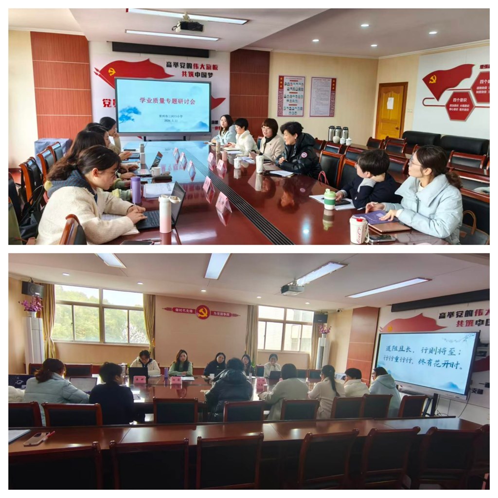 为深入落实新课标理念、推动教学提质增效、培育学生“尚美爱创”品格,3月11日下午,常州市解放路小学教育集团三河口分校蒋琳校长组织召开语数英三大学科学业质量专题研讨会。天宁区教师发展中心主任丁勤芝,区学科教研员邱俊、黄妍、沈琛、杭燕楠,学校陈慧霖书记、张春燕副校长以及各学科责任人、行政人员和教研组长齐聚一堂,共探育人良方。解小白娟芳副校长以及各学科责任人共同参与了此次会议。